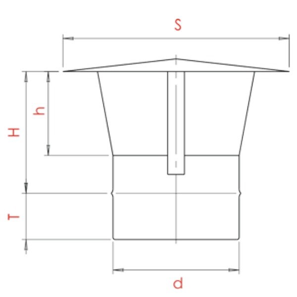 Является завершающим элементом дымового канала, используется для предохранения одностенного дымохода от атмосферных осадков.
